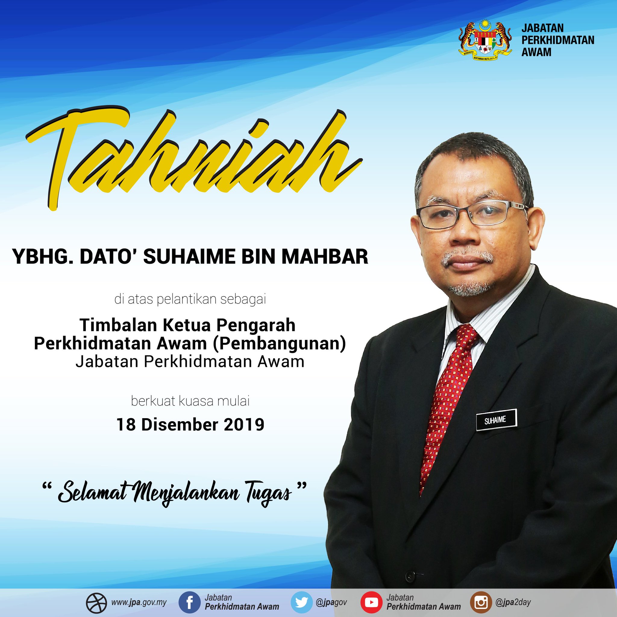 Jabatan Perkhidmatan Awam En Twitter Tahniah Kepada Ybhg Dato Suhaime Bin Mahbar Di Atas Pelantikan Sebagai Timbalan Ketua Pengarah Perkhidmatan Awam Pembangunan Jpa Selamat Menjalankan Tugas Ismailbakar60 Jpmgov Jpenerangan