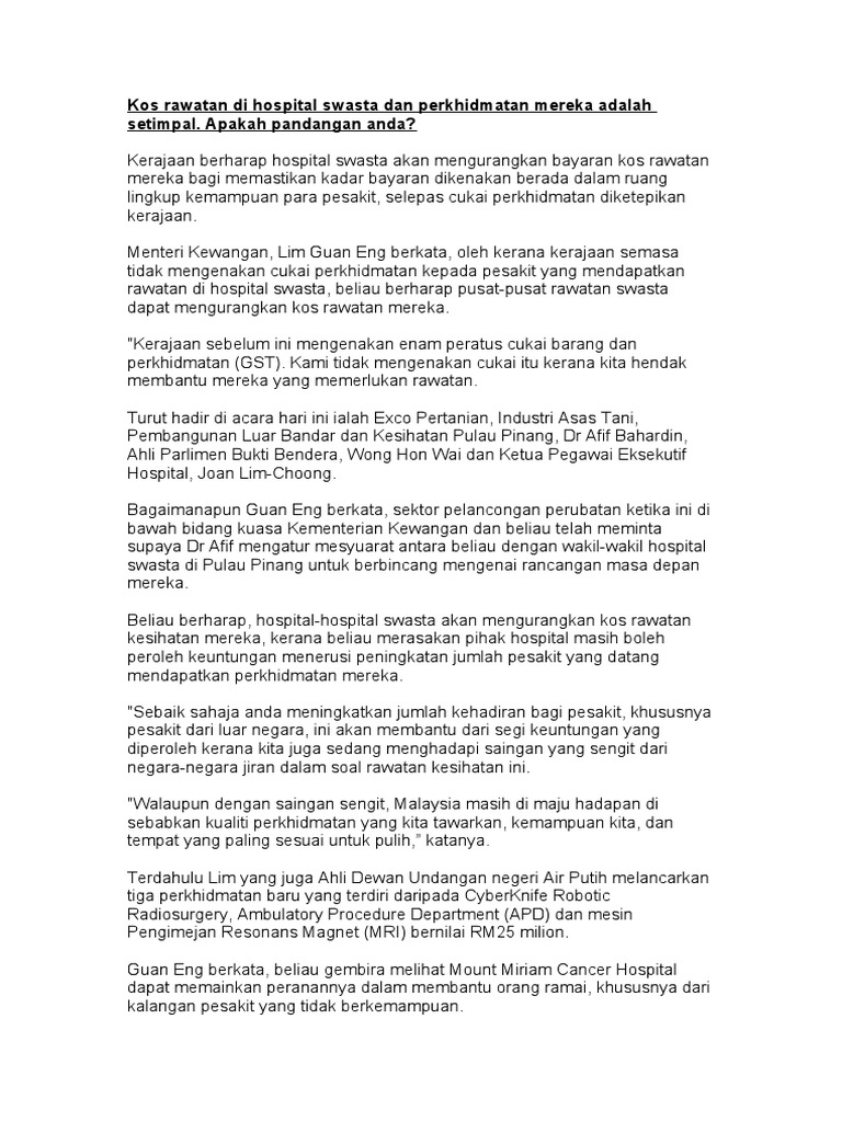Kos Rawatan Di Hospital Swasta Dan Perkhidmatan Mereka Adalah Setimpal Apakah Pandangan Anda