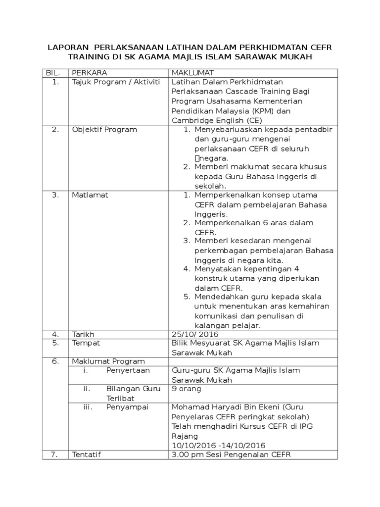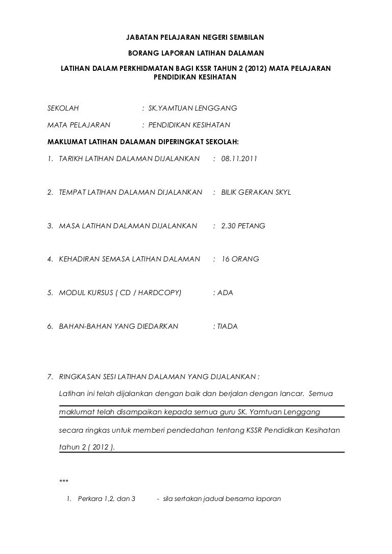 Laporan kursus latihan dalam perkhidmatan pendidikan islam. Contoh Laporan Latihan Dalam Perkhidmatan. Perhatian kepada semua guru j-qaf kohort 2008 di kawasan keningau satu kursus latihan dalam perkhidmatan akan di adakan di keningau sebagaimana maklumat berikut. For more information and source.