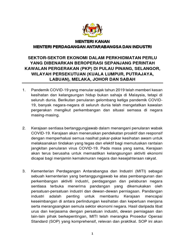 Senarai Perkhidmatan Perlu bagi sektor ekonomi dan sosial yang dibenarkan beroperasi adalah seperti berikut. Di mana sepanjang tempoh tersebut semua sektor tidak dibenarkan untuk beroperasi kecuali yang melibatkan sektor ekonomi dan perkhidmatan perlu essential economic and service sector yang akan. PUTRAJAYA - DIKEMAS KINI Semua aktiviti ekonomi dan sosial tidak dibenarkan beroperasi kecuali 17 sektor essential services perkhidmatan perlu semasa tempoh pelaksanaan penutupan penuh sektor sosial dan ekonomi atau total lockdown fasa pertama bermula Selasa ini.